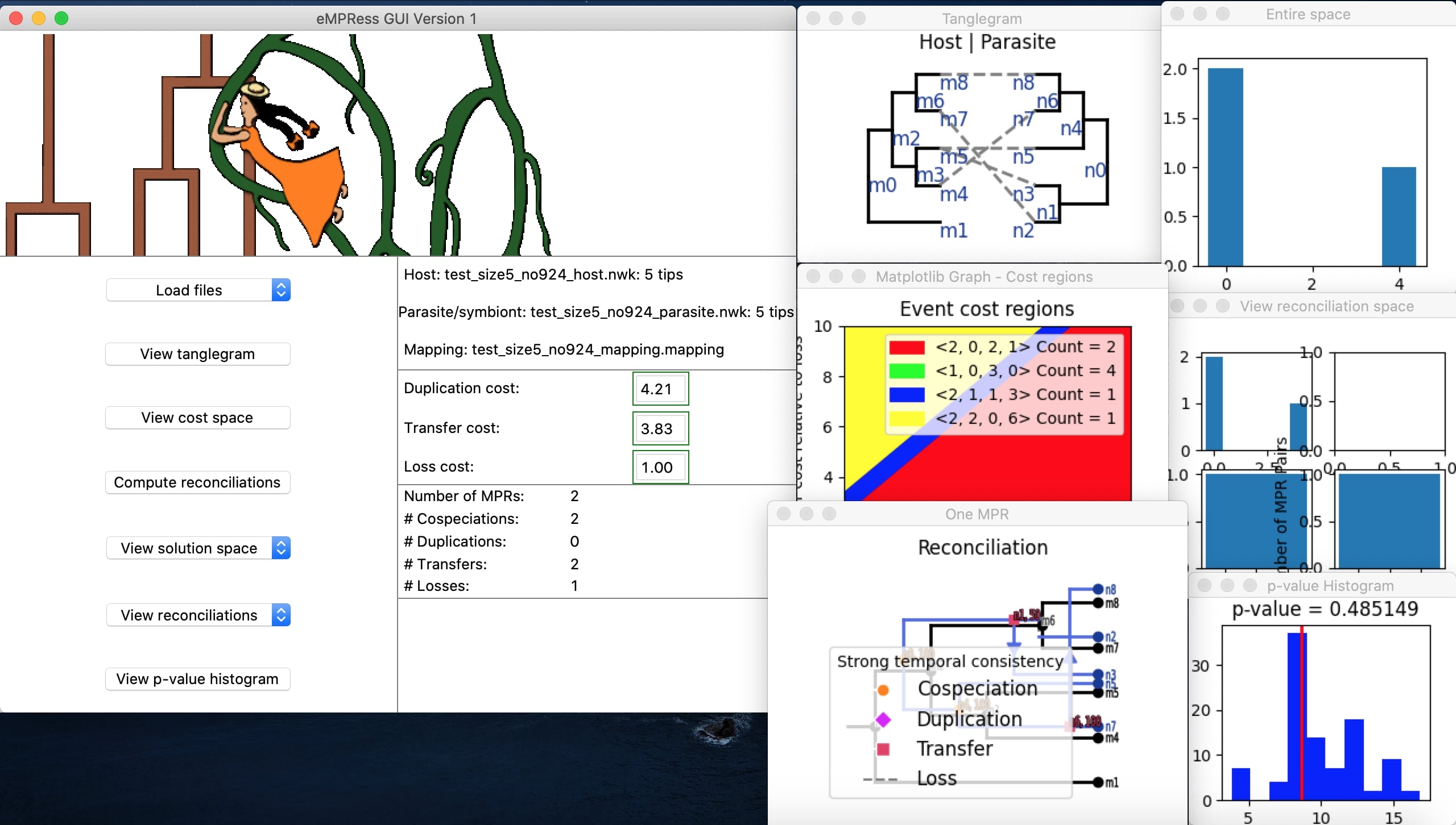 View DetailsAs a research assistant at Harvey Mudd College in summer 2020, I collaborated with a team of four students and two professors to come up with the design and requirements of empress application. I have developed a graphical user interface for empress application using Python and Tkinter. Empress is a software tool that uses the duplication-transfer-loss model to find the most probable way two species lived together in the past. I used Git/GitHub for source control and participated in rigorous code review process throughout application development. Publication: Santichaivekin Santi, Qing Yang. 2020. eMPRess: A Systematic Cophylogeny Reconciliation Tool. Bioinformatics (BIOINF-2020-1780). Submitted.